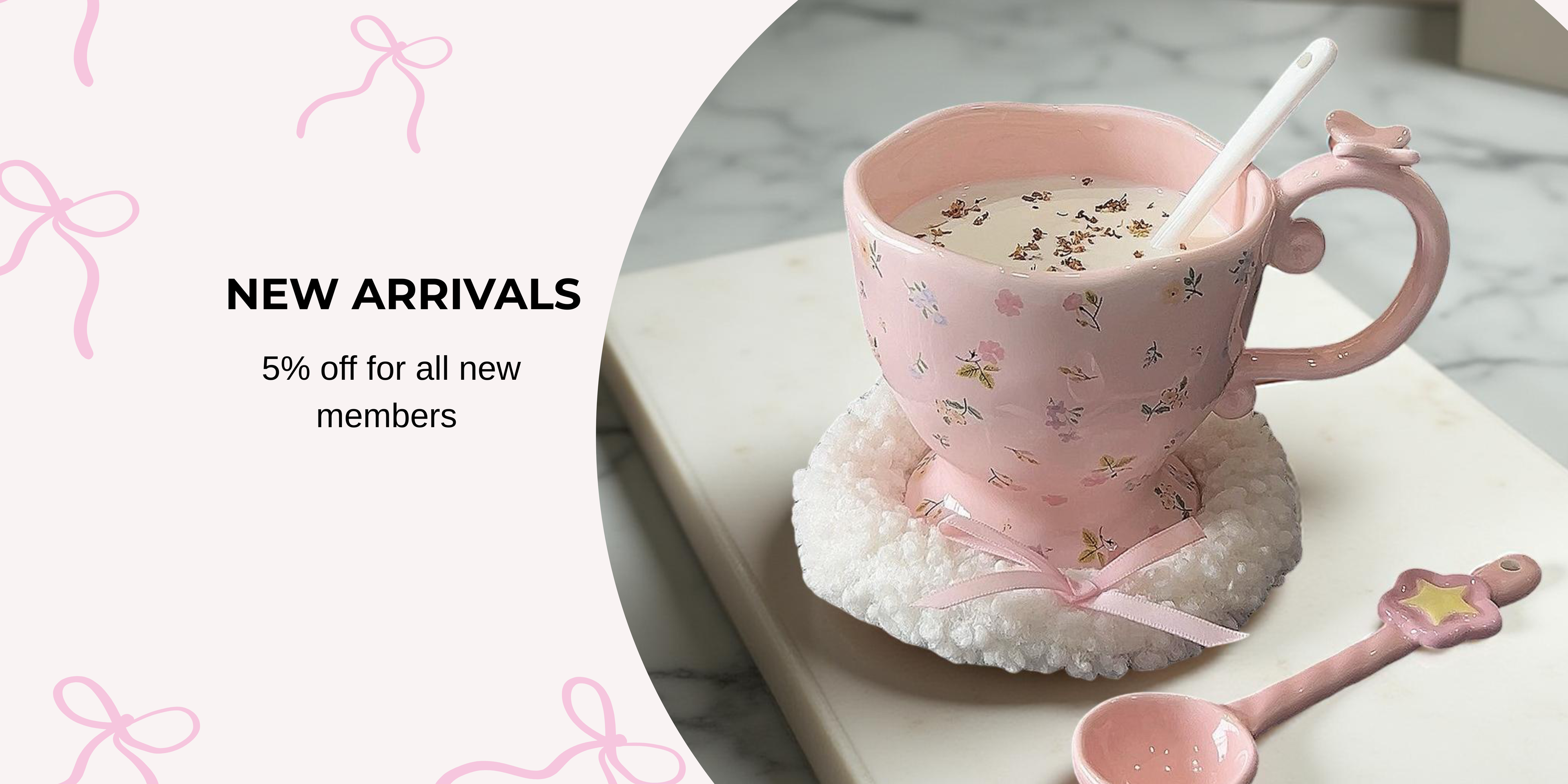 Coquette Tulip & Bunny Ceramic Mug – Pink Bead Handle + Bow Spoon